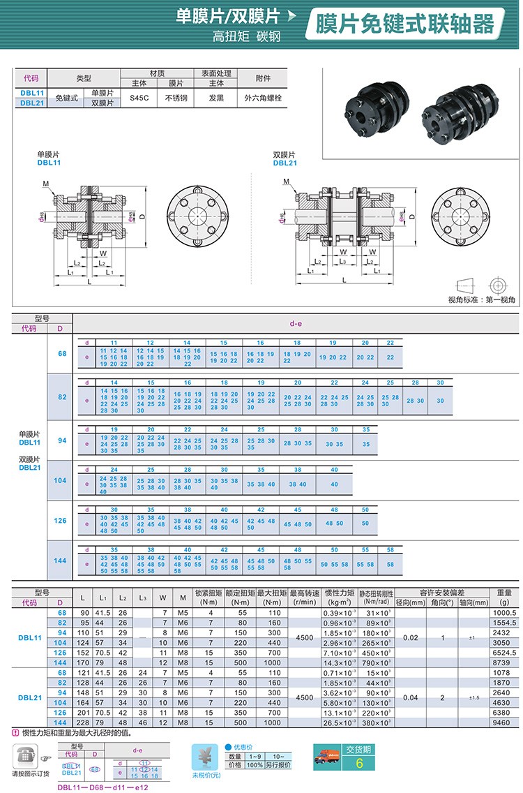 DBL11-D68、DBL11-D82、DBL11-D94、DBL11-D104、DBL11-D126、DBL11-D144、