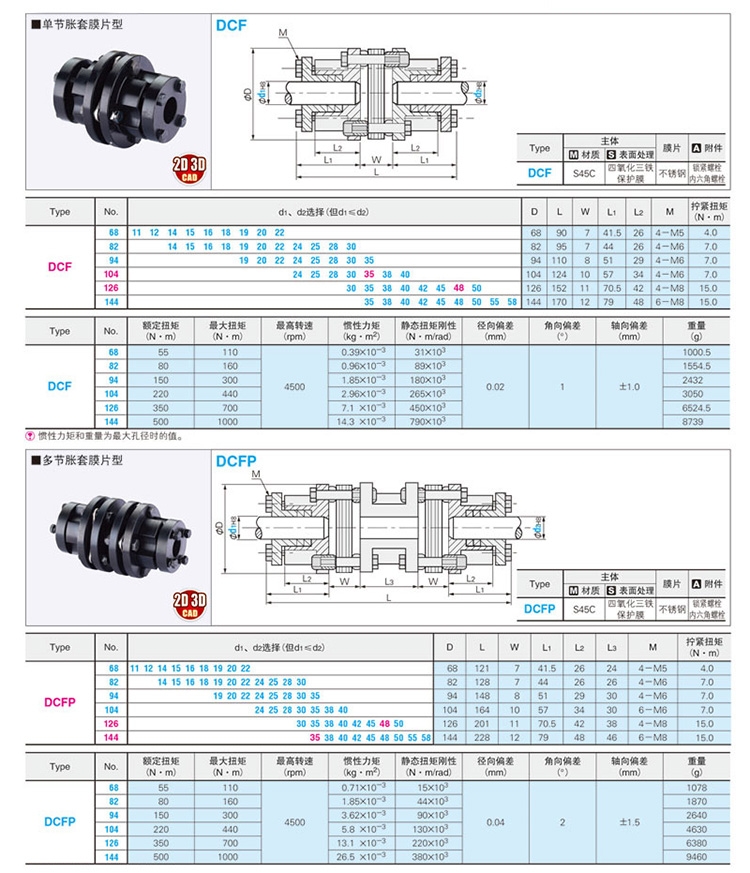 DCFP68、DCFP82、DCFP94、DCFP104、DCFP126、DCFP144、
