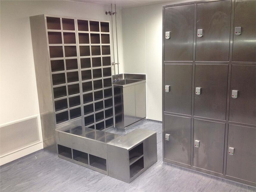 不锈钢柜特点:设计简洁,结构新颖,功能完善,其内部有分隔板,可以将干净服装与其他衣物分开,专门设计有放鞋的空间,增加了挂衣杆,毛巾钩,镜子等,让使用者更觉方便,其内外表面全部采用静电喷涂工艺,防腐防锈,独特的气孔设计可去除内部异味,可选购具有防盗功能的锁具
