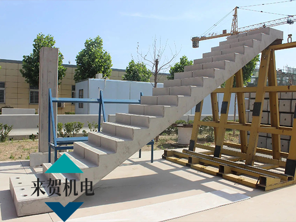 预制楼梯模具构件出厂采用大型平板运输车运输,预制楼梯模具构件采用水平态运输,堆叠层数不高于4层,层间采用木质缓冲楔形垫块支撑于吊装孔位置进行隔垫,确保运输中构件的安全。