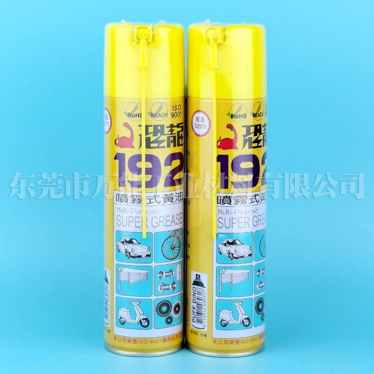 ?恐龙192喷雾式黄油适用于工业机器、汽机车、电卷门 机械仪器、脚踏车、缝纫机、除草机、门窗绞縺、钓具、游艇各种机械。