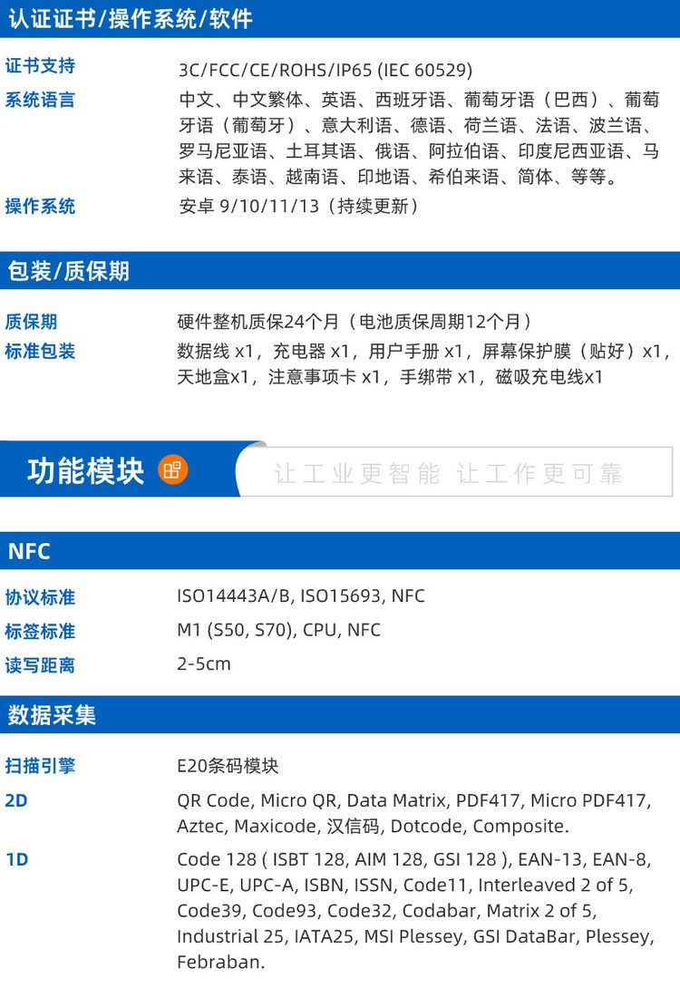 包装清单 | USB数据线 x1, 充电器5V 2A x1, 用户手册 x1, 屏幕保护膜(贴好)x1, 注意事项 | ||