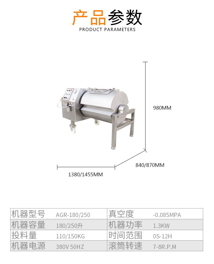 用途 | 排骨鸡鸭牛肉等一起滚揉腌制 | ||