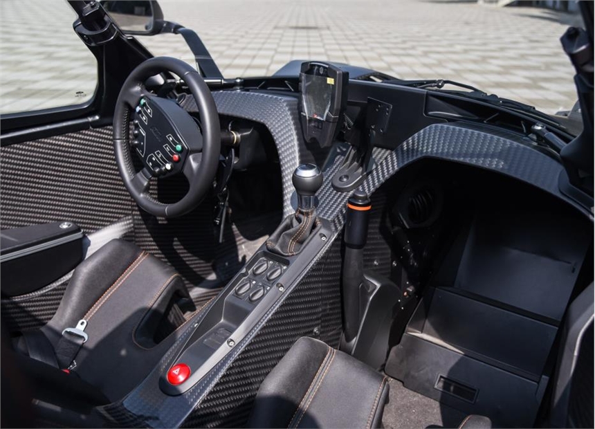 KTM X-BOW是由KTM公司连同奥迪公司合作,并由意大利赛车底盘制造商Dallara一同开发生产的一台可以合法上路的超轻量化跑车。该款车型的重量仅有850kg左右。2.0L缸内直喷涡轮增压发动机,马力300hp,扭矩420Nm,0-100km/h加速时间3.9s!它天生就是一台属于驾驶者的速度机器!