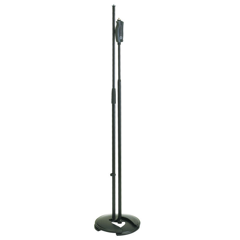 这个模型有一个圆的,沉重的底部与一个切口设计,允许堆叠多达5个麦克风台。它有值得信赖的软触摸式单手离合器,允许高度调整速度适宜挤压,容易提高和降低麦克风。