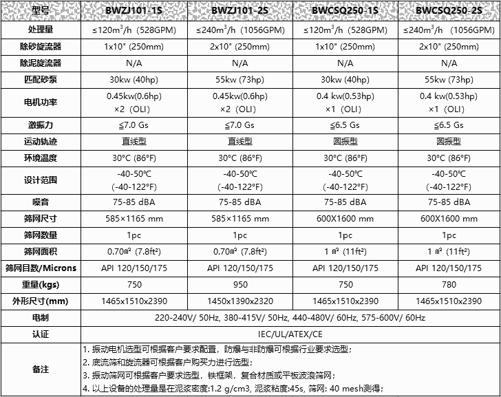 钻井液除砂器技术参数表:
